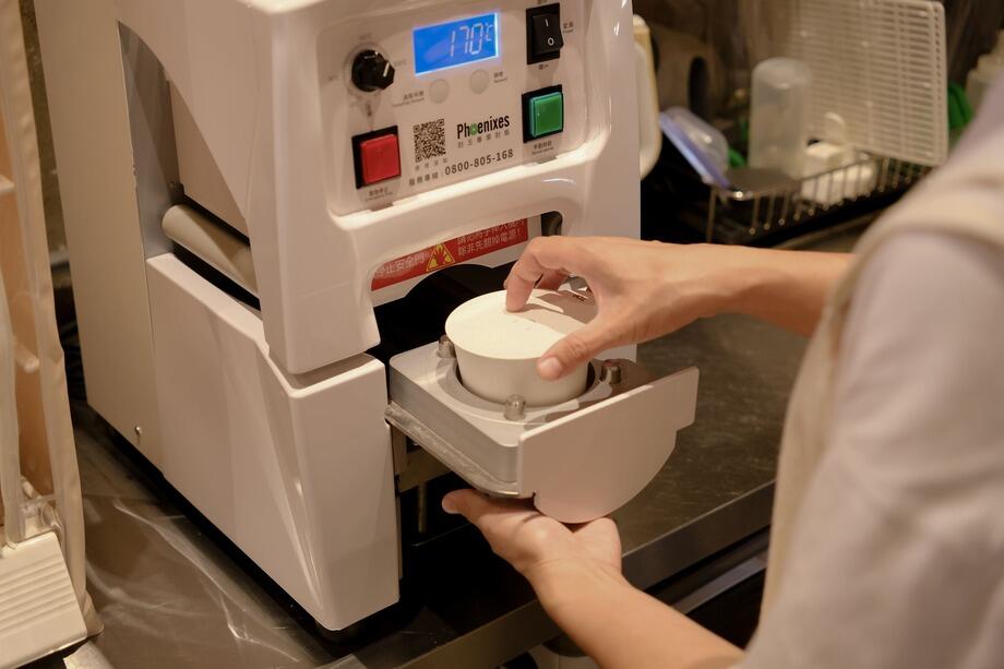 Maki: O funcionamento é muito simples; basta colocar o copo e ele sela. Não é preciso fazer muitos ajustes e não há desperdício de papel. Desde que abri a loja, o papel de vedação praticamente não apresentou problemas. Funciona bem tanto para bebidas quentes quanto frias, com uma taxa de sucesso superior a 95%!